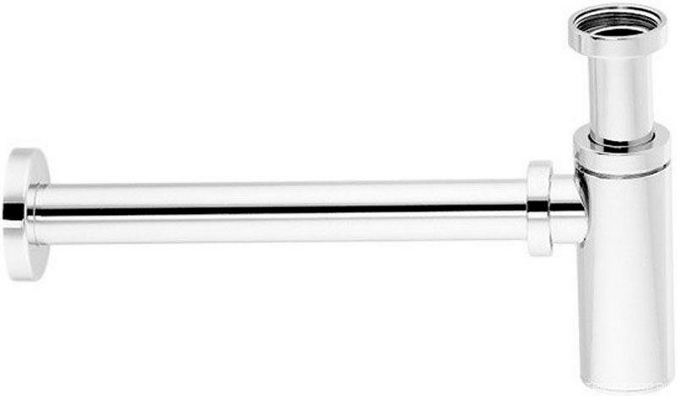 Сифон трубчатый для раковины, под донный клапан G1 1/4*32 с отводной трубой и отражателем, хром