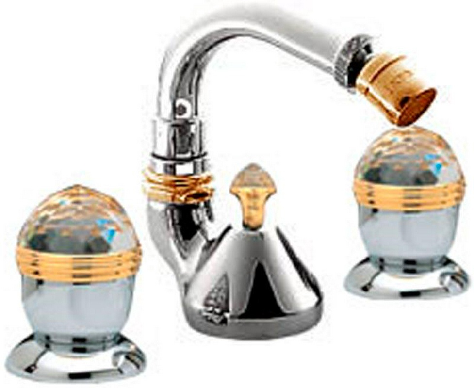 Смеситель для биде на 3 отв., с д/к, (цв. хром/золото), Okay Swarovski ZZ