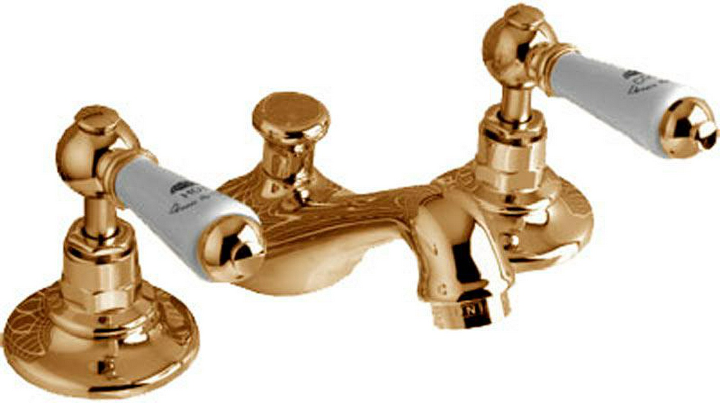 Смеситель для биде на 3 отв., c д/к, (цв.латунь, ручки цв.белый), Dandy ZZ