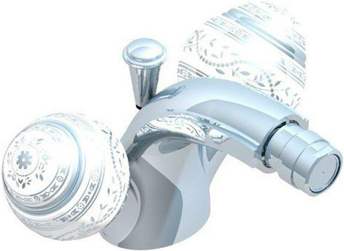 Смеситель для биде на 1 отв. с д/к (цв. хром), ручки (цв. белый / платина), Marquise blanc decor platine ZZ
