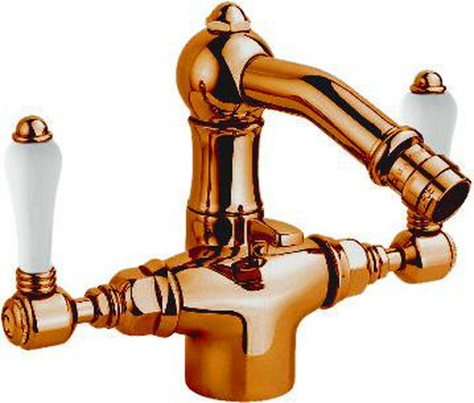 Смеситель для биде на 1 отв. с д/к (цв.бронза/ручки керамич.белые), Nicolazzi ZZ