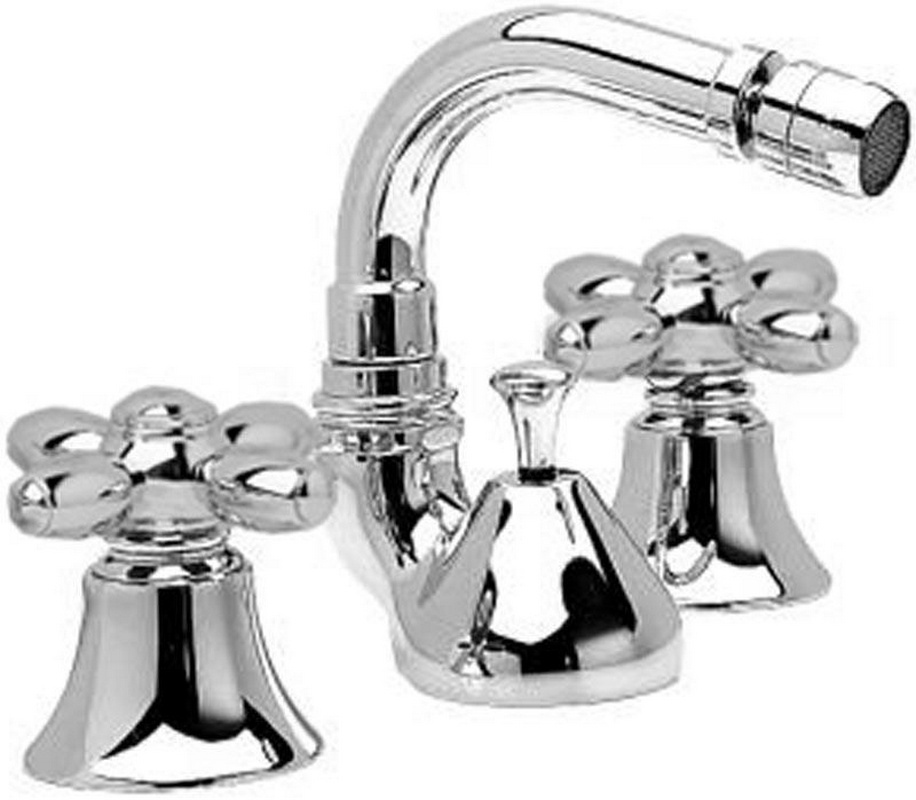Смеситель для биде на 3 отв., с д/к, (корпус цв. хром, ручки цв. хром), Primavera ZZ