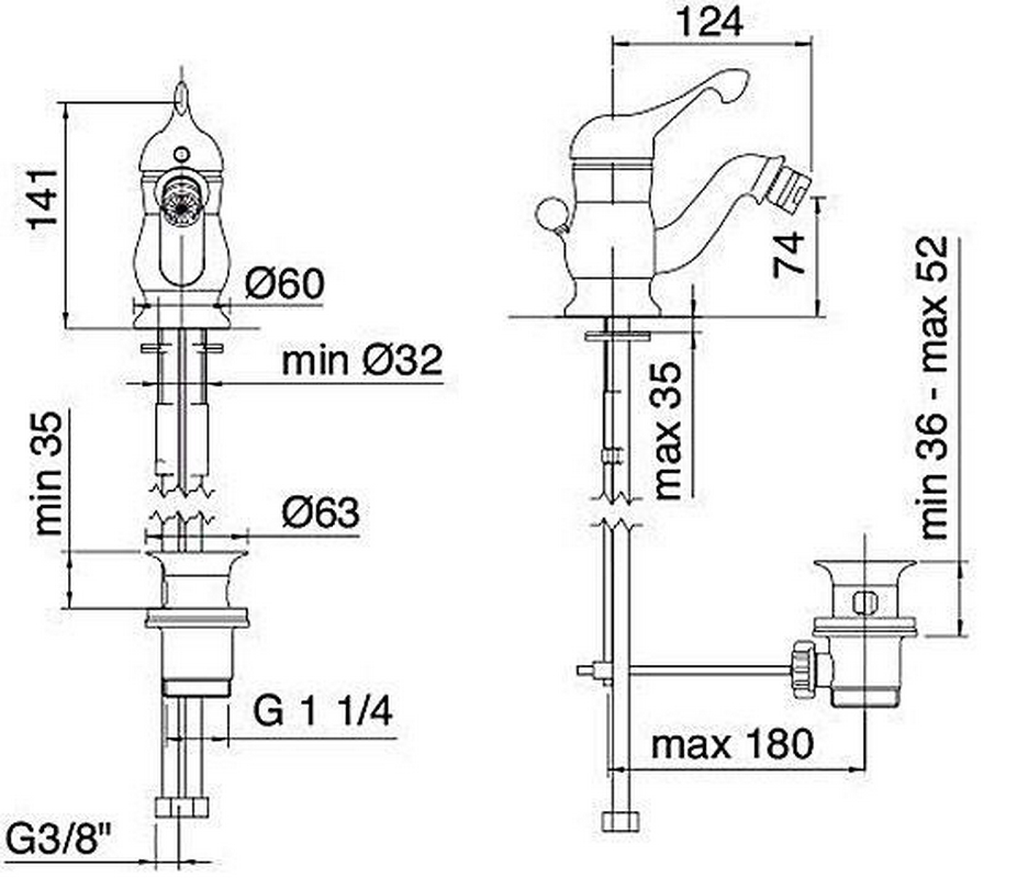 Смеситель для биде, с д/к, (цв.золото), Piccadilly KL