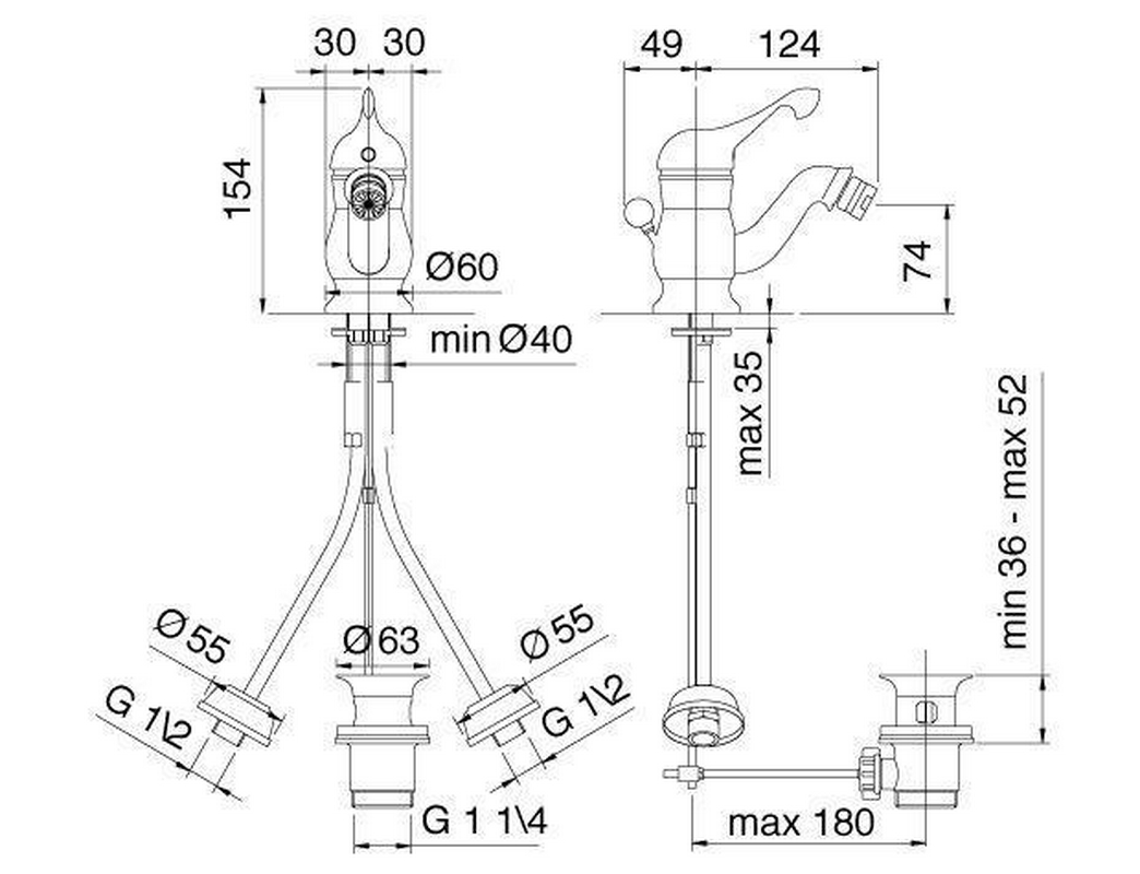 Смеситель для биде, с д/к, (maniglia PL / рукоятка с пластик. вставкой белого цвета), (цв.бронза) Piccadilly KL