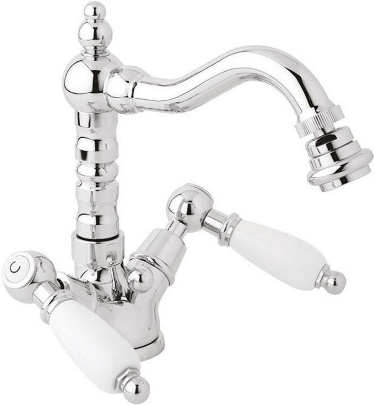 Смеситель для биде, с д/к, (цв. хром, ручки белые), First ZZ