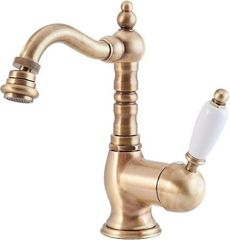 Смеситель для биде, высокий с поворотным изливом, с д/к, (цв.бронза, ручка цв.белый), Elite ZZ