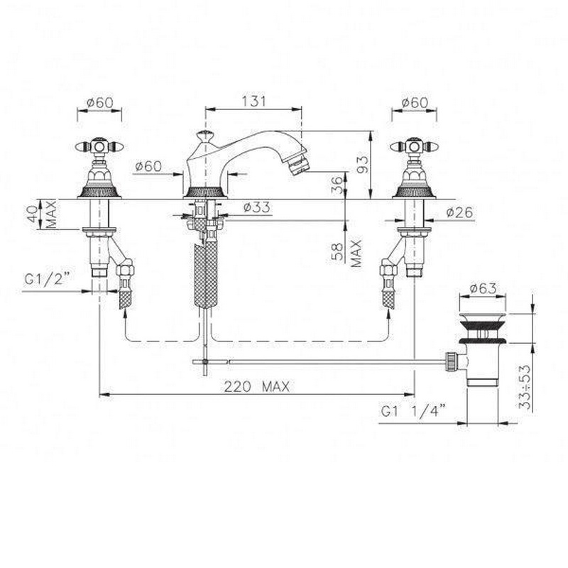 Смеситель для биде, на 3 отв., с д/к, (цв.гальван.золото, ручки 36), Impero ZZ