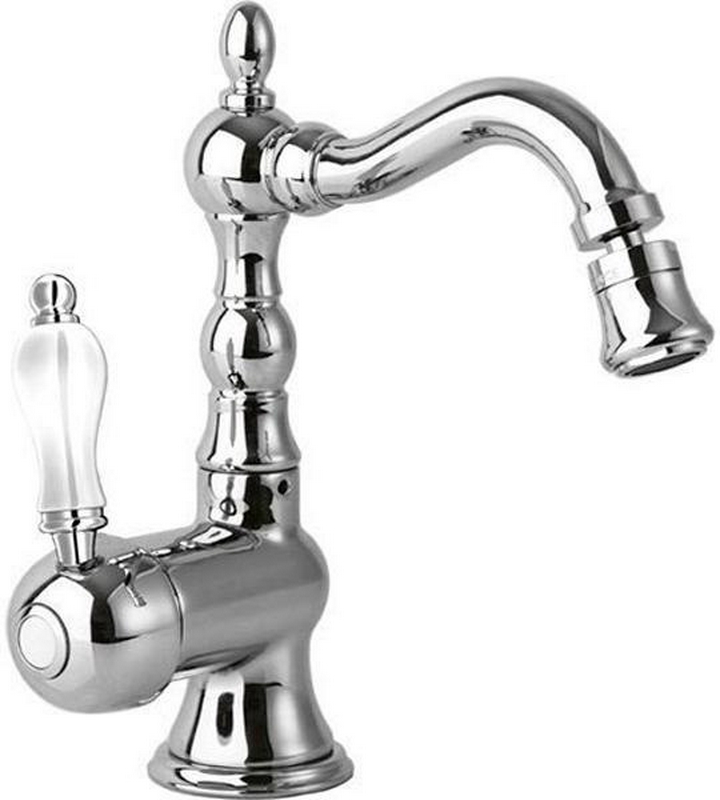 Смеситель для биде, с поворотным изливом, с д/к, (цв.хром, ручка цв.белая), Venezia ZZ