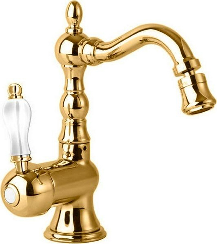 Смеситель для биде, с поворотным изливом, с д/к, (цв.золото, ручка цв.белая), Venezia ZZ
