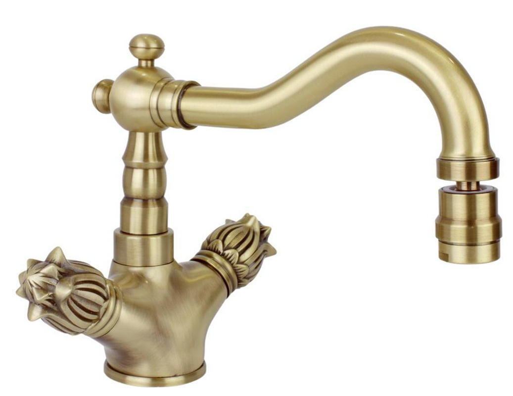 Смеситель для биде, "Г-образный" поворотный излив, с д/к, (цв.бронза), Romantica ZZ