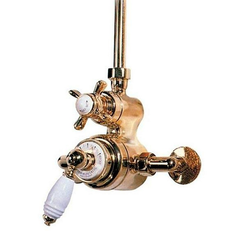 Термостат наружного монтажа, для душевой для стойки, с белой ручкой, (цв.светлое золото), Devon&Devon ZZ