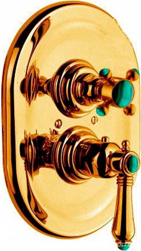 Смеситель для душа с термостатом и запорным ветилем (внешняя часть) для скрытого монтажа (цв.гальван.золото, Rubino Tagliato Cut Rubin) Le Pietre ZZ