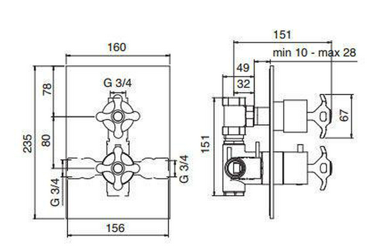 Смеситель для душа, термостат, встраиваемый в стену, (цв.бронза) Nuova Retro ZZ