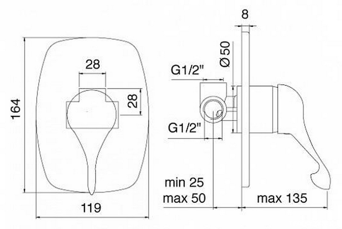 Смеситель для душа, встраиваемый в стену , (maniglia PL / рукоятка с пластик. вставкой белого цвета), (цв.хром) Piccadilly ZZ