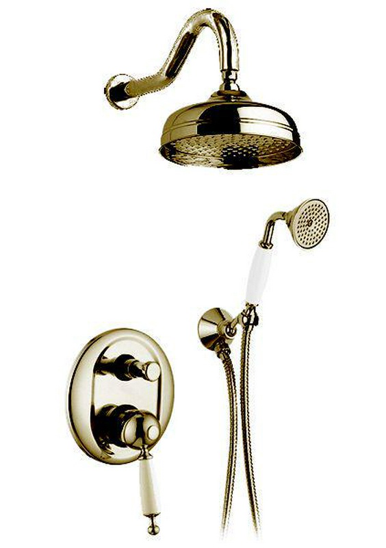 Смеситель для душа, встаив. в стену с переключ., c верхн.стацион. душем 30см, лейка, шланг, кронштейн в комп., (цв. бронз, ручка белая), Canterbury ZZ