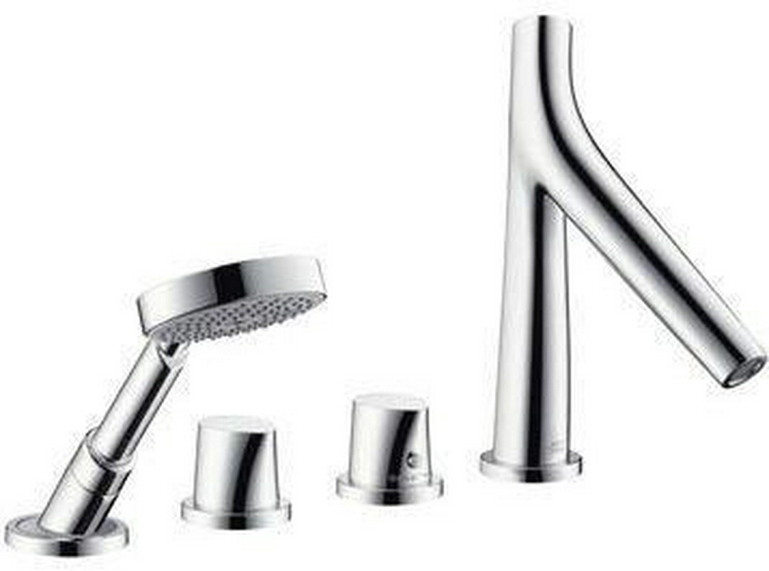 Смеситель(термостат) д/в, встр. в борт, на 4 отв., с ручн. душем, шланг 110см, внеш/часть (БЕЗ внутр.–арт.15460180 ), (хром), Axor Starck Organic XX