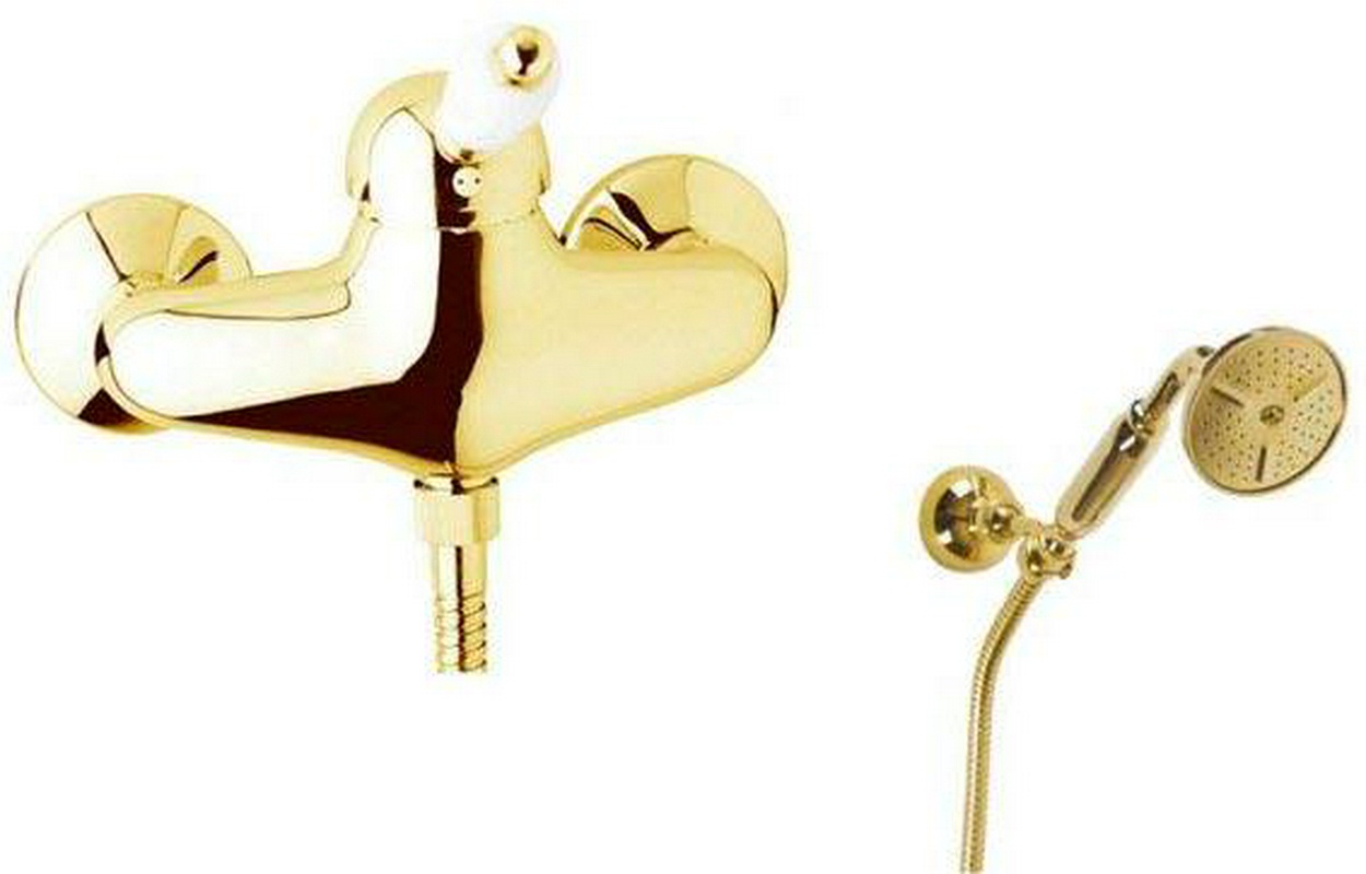 Смеситель для душа, лейка, шланг, кронштейн в компл., (цв.золото, ручка цв.белый), Elite XX
