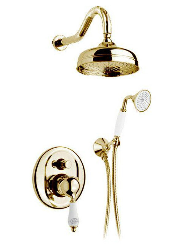 Смеситель для душа, встаив. в стену с переключ., c верхн.стацион. душем 30см, лейка, шланг, кронштейн в комп., (цв. бронза), Phoenix ZZ