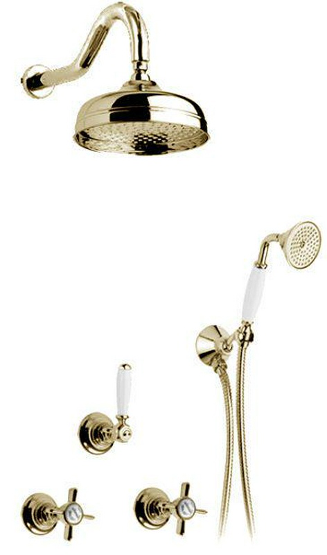 Смеситель для душа, встраив. в стену с переключ., c верхн.стацион. душем 20см, лейка, шланг, кроншт в компл., (цв. золото), Princeton ZZ