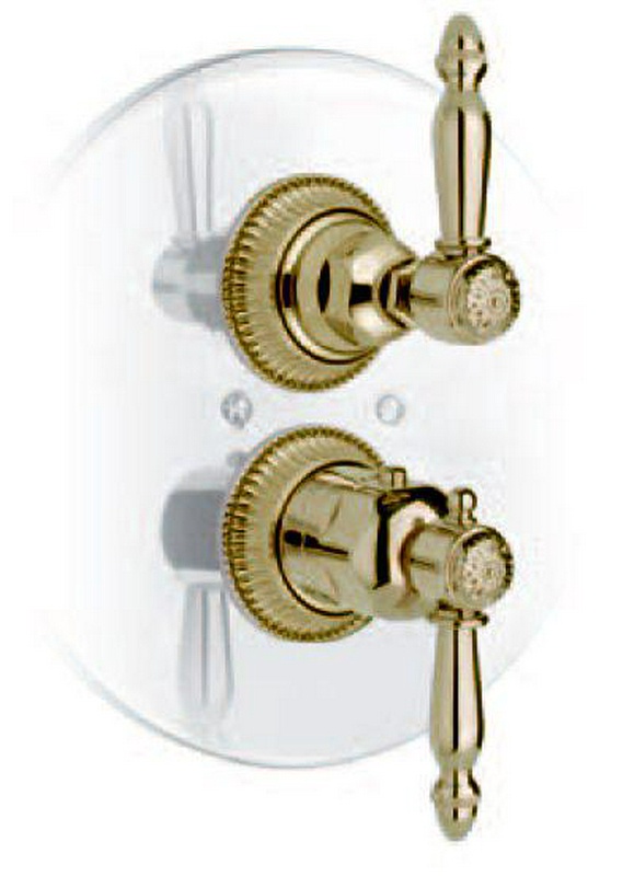 Наружная часть встр.в стену термостата д/душа 3/4, с запорным вентилем, (БЕЗ встраив.части арт.4910), (цв.гальван.золото, ручки 36L), Impero ZZ