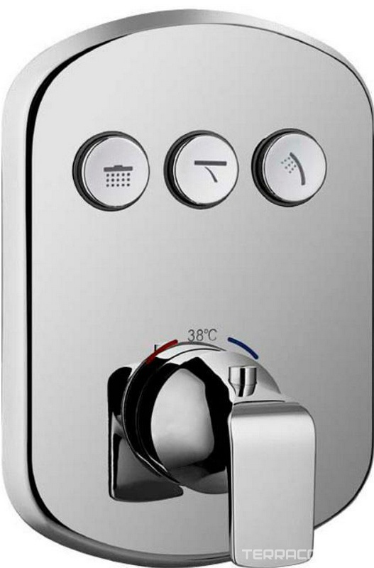 Встраиваемый термостатический смеситель с трёхпозиционным кнопочным переключателем, (внутренняя часть в компл.),(цв. хром), Globo ZZ