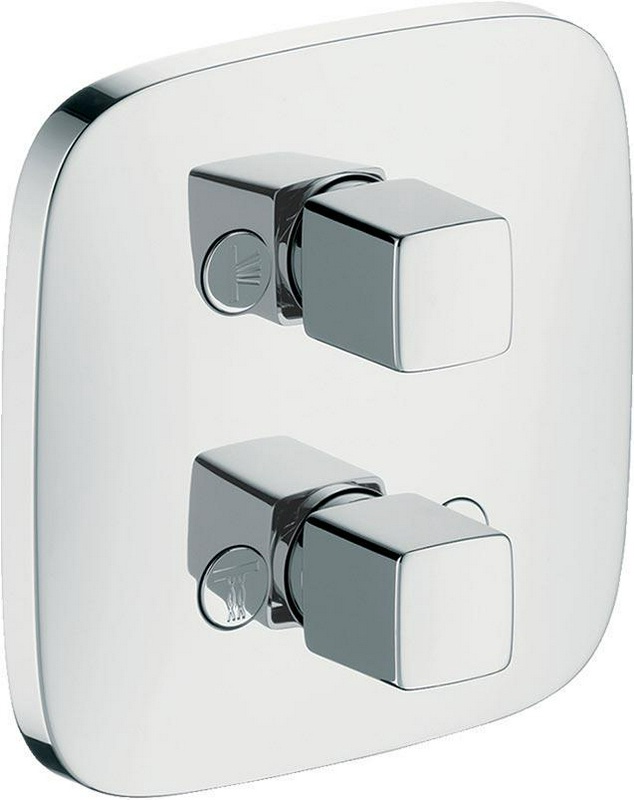 Термостат с запорным и переключ.вентилем на 2 потребителя, (ВНЕШНЯЯ часть, БЕЗ iBox арт. 01800180, цв. хром, расход воды 26 л/мин), Ecostat E ZZ