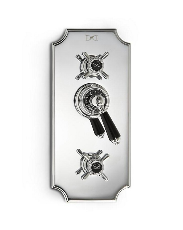 Смеситель термстат, встраиваемый в стену, с переключателем, (цв.хром, ручки цв.хром/чёрн.), Black Dandy ZZ
