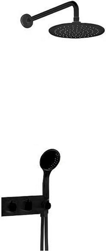 Смеситель-термостат д/д, встр.в стену со стац.стенов.,верхнем душем 25х25см., душ.лейка, шланг, кронштейн в компл., (цв.черный матовый), Ixmo ZZ