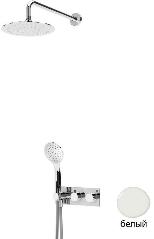 Смеситель для душа, встр.в стену со стац.стенов.,верхнем душем d23см., душ.лейка, шланг в компл., (цв.белый матовый), Cezares ZZ