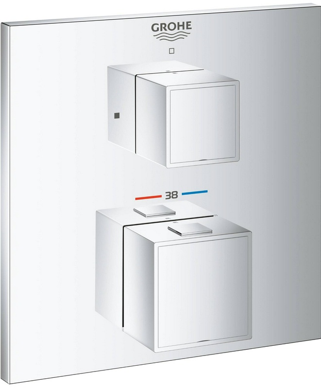 Термостат с запорным и переключ.вентилем на 2 потребителя, (ВНЕШНЯЯ часть, БЕЗ iBox арт. 01800180, цв. хром, расход воды 26 л/мин), Ecostat E ZZ