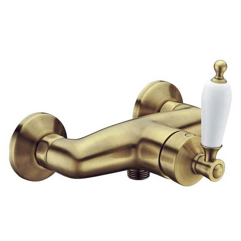 Смеситель для душа, лейка, шланг, кронштейн в компл., (цв.бронза, ручка цв.белый), Elite ZZ
