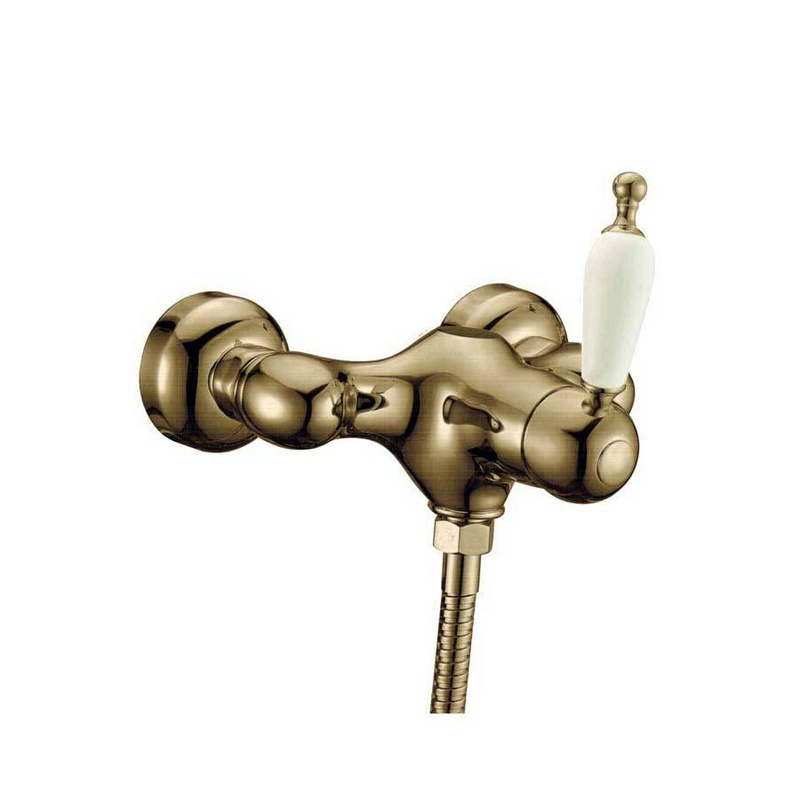 Смеситель для душа, лейка, шланг, кронштейн в компл., (цв.бронза, ручка цв.белый), Elite ZZ