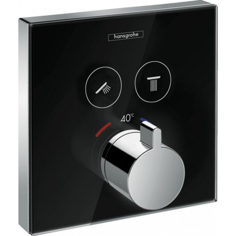Смеситель-термостат для душа, встр.в стену на 2 потреб, внешняя часть БЕЗ скрытой части арт. 01800180, (стеклян.цв.белый/хром), ShowerSelect Glass ZZ