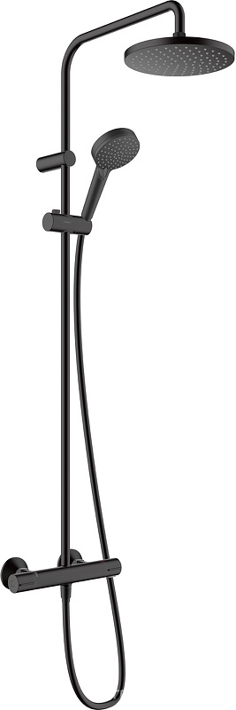 Смеситель для душа (термостат) со стационарным верхним душем 230х170мм, ручной душ,шланг в компл, (цв.мат.черный), Vernis Shape Showerpipe 230 1jet ZZ
