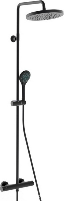 Смеситель-термостат для душа, со стационарным верхним душем пластик d250мм, ручн.душевая лейка 3 режима, шланг в компл., (цв.черный матовый), Elios ZZ