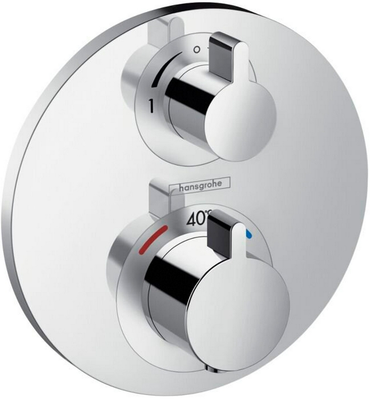 Термостат с запорным и переключ.вентилем на 1 потребителя, (ВНЕШНЯЯ часть, БЕЗ iBox арт. 01800180, цв. хром, расход воды 26 л/мин), ZZ Hansgrohe Ecostat E 15707000