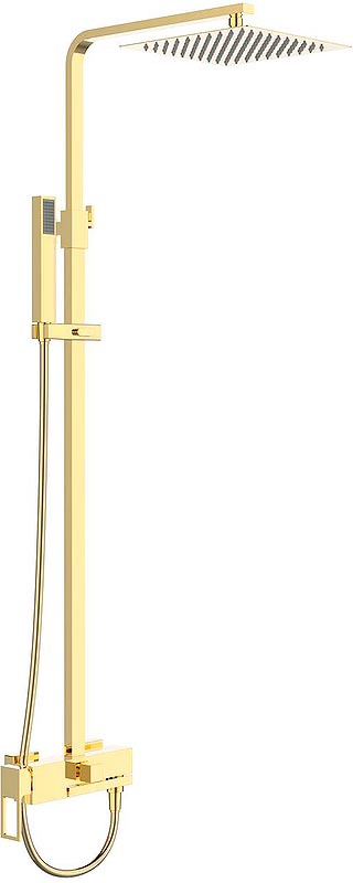 Смеситель для душа, со стационарным верхн.душем 25х25см., душевая лейка, шланг в компл., (цв. золото), Luce ZZ