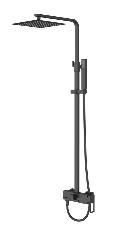 Смеситель для душа, со стационарным верхн.душем 25х25см., душевая лейка, шланг в компл., (цв.черный матовый), Luce ZZ