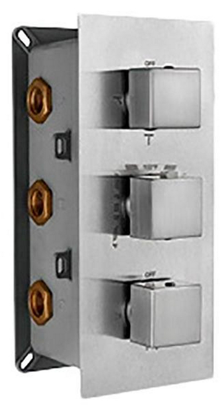Смеситель-термостат, д/д, встраив. в стену, на 4-6 потребит, ручки квадр., встр.часть в компл., (цв.хром), RGW ZZ