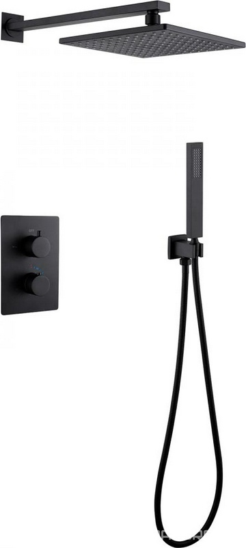 Душевой к-т: смес-термостат встр.в стену, верхний душ 255х255мм, ручн.душ, шланг, кронштейн совмещ. со шланг.подсоед., (цв.черный матовый), Vincea ZZ