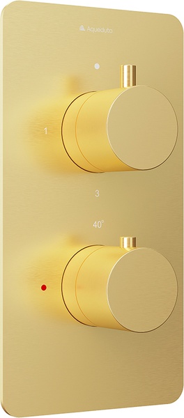 Смеситель термостат для душа встраиваемый в стену, на 2 потребителя, (цв.шлифованное золото), Aceno ZZ