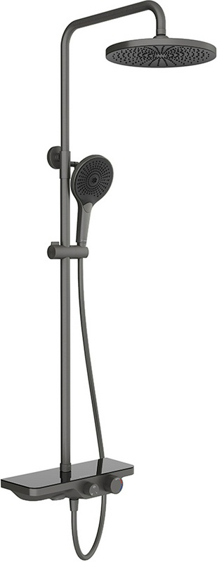 Смеситель для ванны/душа, со стационарным верхним душем пластик d255мм, излив, ручн.душевая лейка, шланг в компл., (цв.оружейная сталь), Chuva ZZ