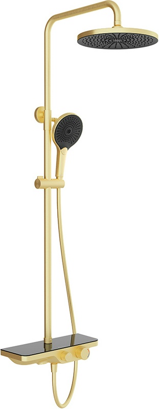 Смеситель для ванны/душа, со стационарным верхним душем пластик d255мм, излив, ручн.душевая лейка, шланг в компл., (цв.шлифованное золото), Chuva ZZ