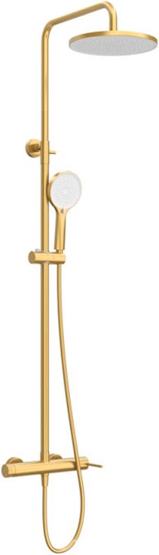 Смеситель для душа, со стационарным верхним душем d23см., шланг, лейка, кронштейн в компл., (цв.брашированное золото), Relax ZZ