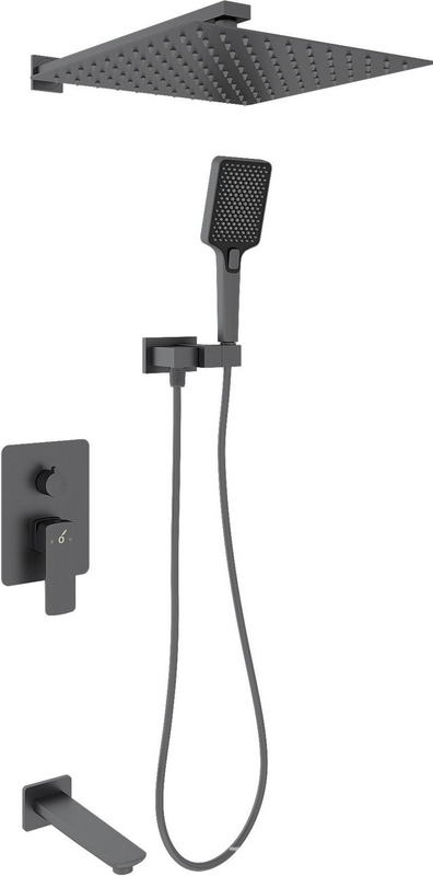 Душевой к-т: смес. встр.в стену, верхний душ 300х300мм, ручн.душ, шланг, кронштейн совмещ. со шланг.подсоед., излив, (цв.оружейный металл), D-LINE ZZ