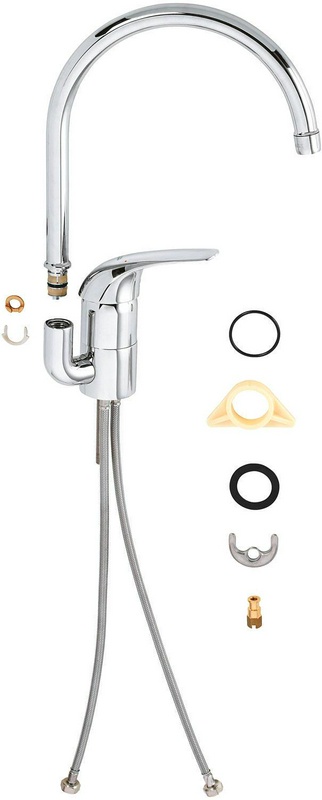 Смеситель для кухни с поворотн. изливом 223 мм, гибкая подводка, БЕЗ донного клапана