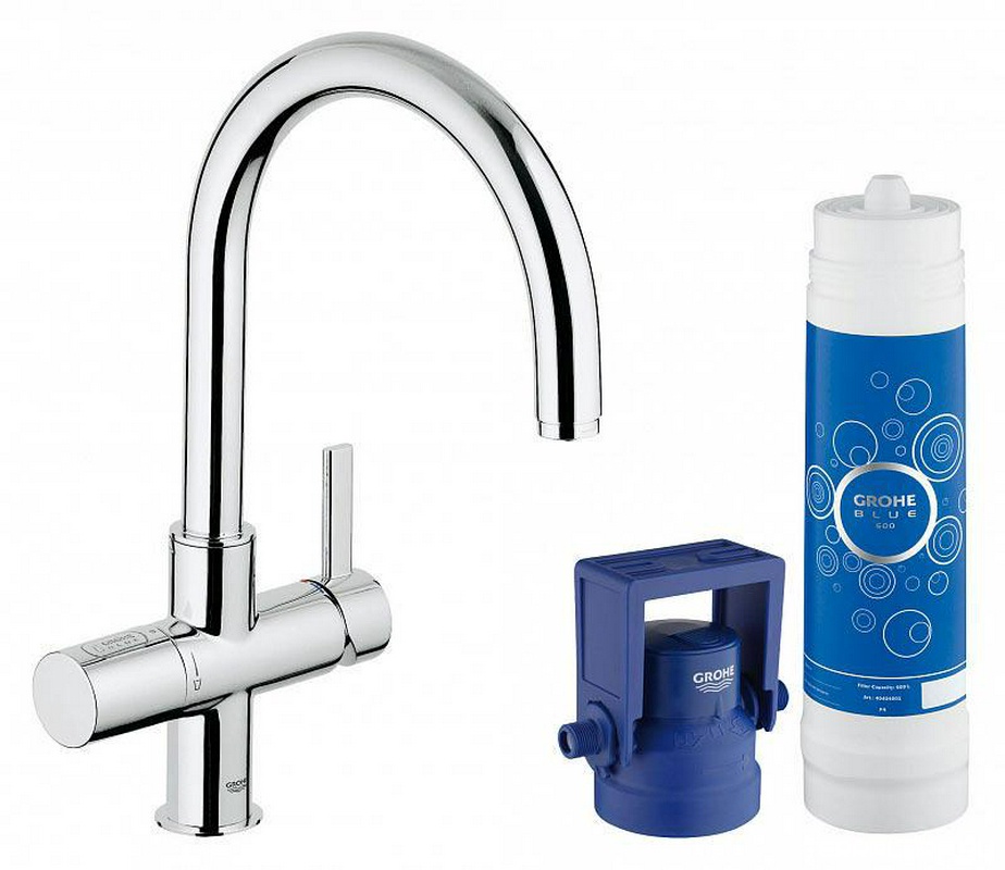 Смеситель однорычажный для кухни BLUE PURE с функцией очистки водопроводной воды, фильтр в компл., хром XX