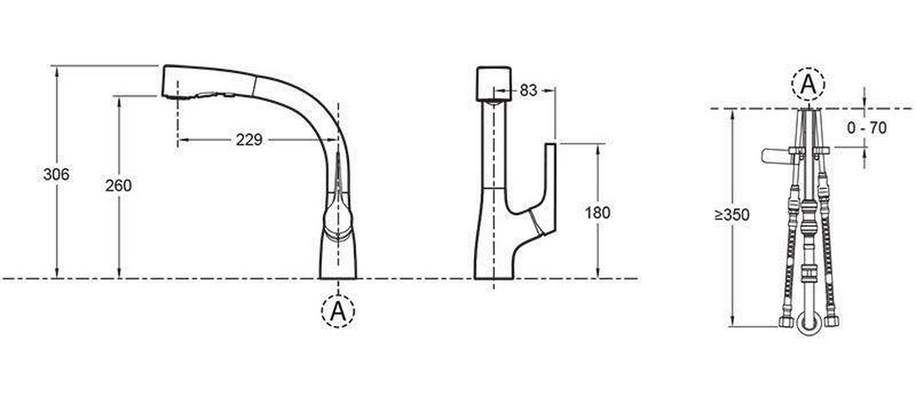 Cмеситель для кухни Elate, однорычажный с выдвижным вращающимся изливом хром ZZ