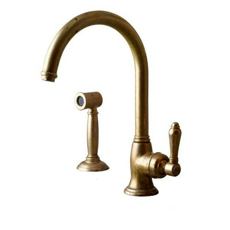 Смеситель для кухни, однорычажный с поворот. изливом и выдвиж. душем, (цв.Ottone Grezzo латунь матов., ручка El Capitain), Nicolazzi ZZ