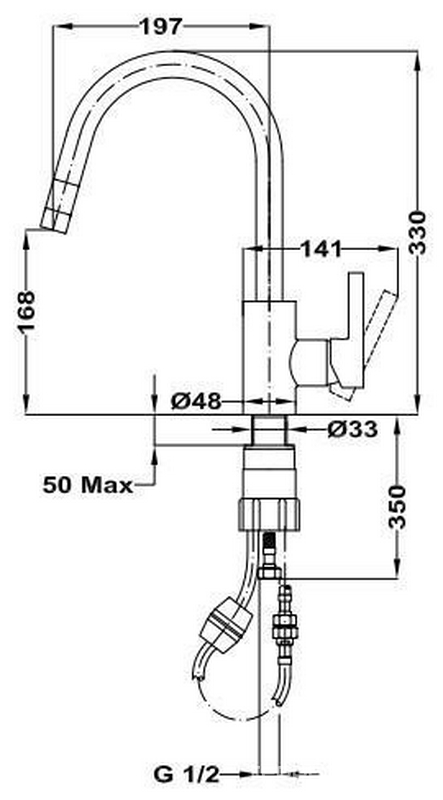 Смеситель для кухни, вытяжной излив, хром ZZ